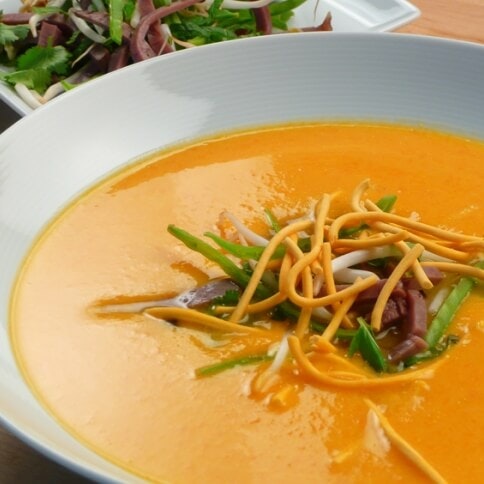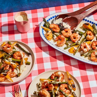 Salade d’asperges et de crevettes grillées à la crème d’estragon