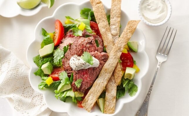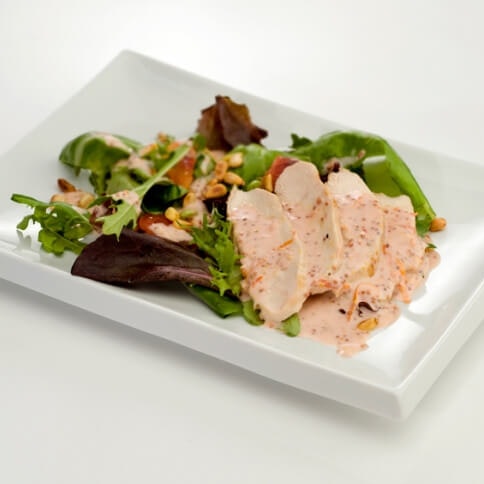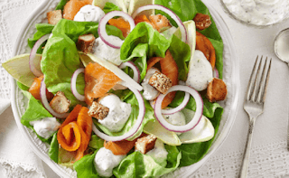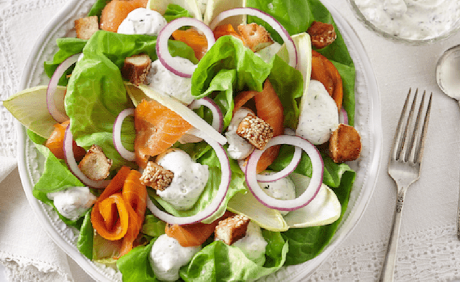 Salade de laitue et saumon fumé, vinaigrette fouettée à l’aneth et au citron