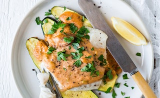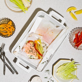 Papillote de truite et légumes à la crème