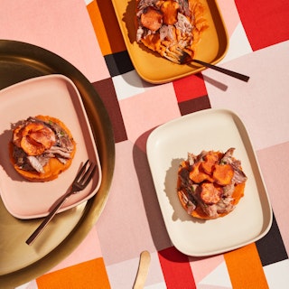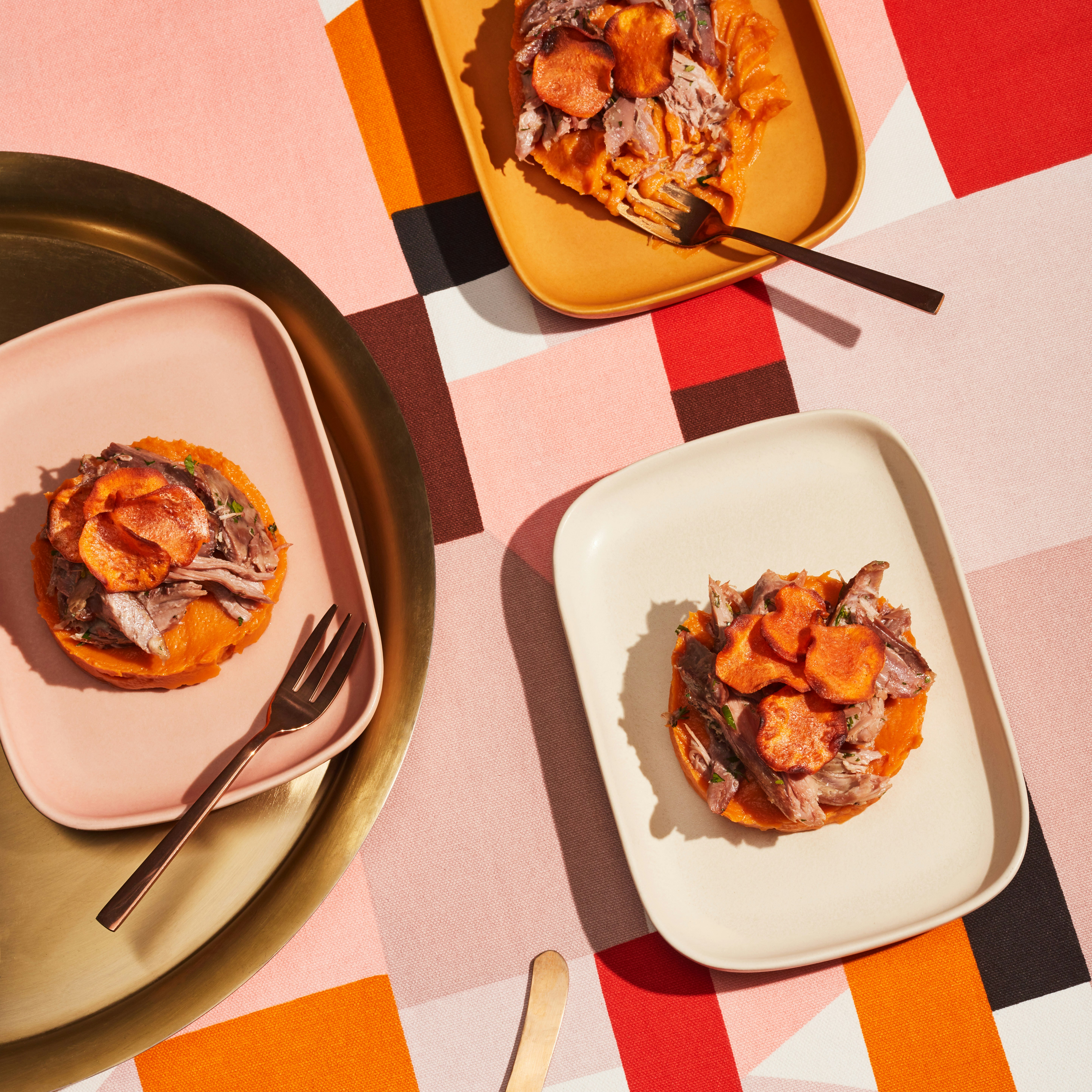 Parmentier de patates douces et canard confit