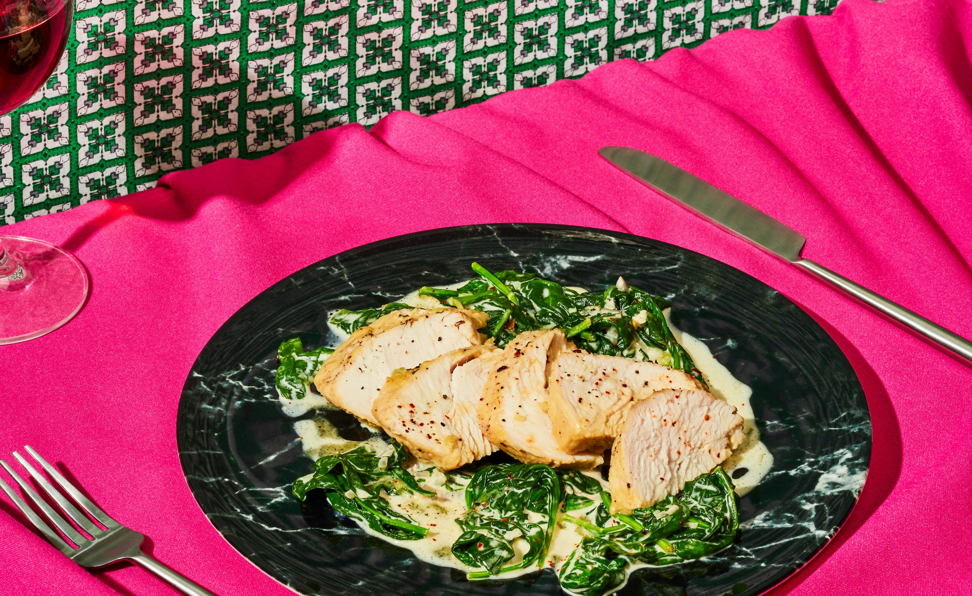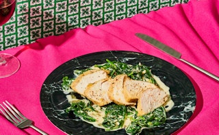 Poitrine de dindon glacée à l’érable et épinards crémeux