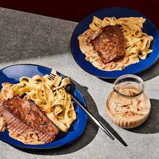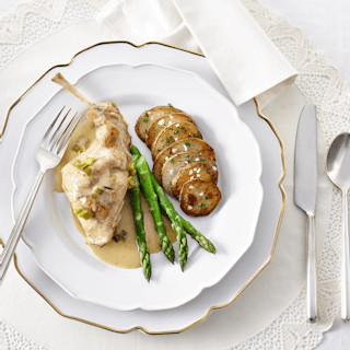 Jarret d’agneau, sauce crémeuse aux pruneaux