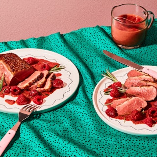 Magrets de canard et sauce crémeuse aux framboises