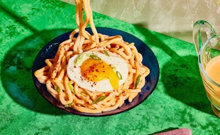 Pâtes au radicchio, sauce aux haricots blancs et aux noix de Grenoble