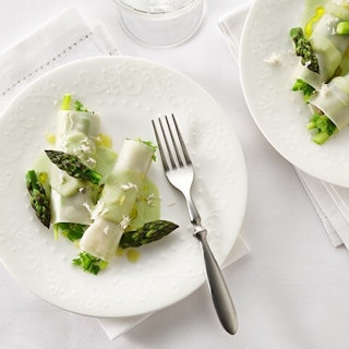 Cannellonis d’asperge, crème au cerfeuil, râpé de raifort