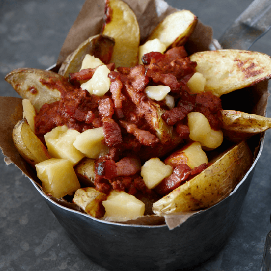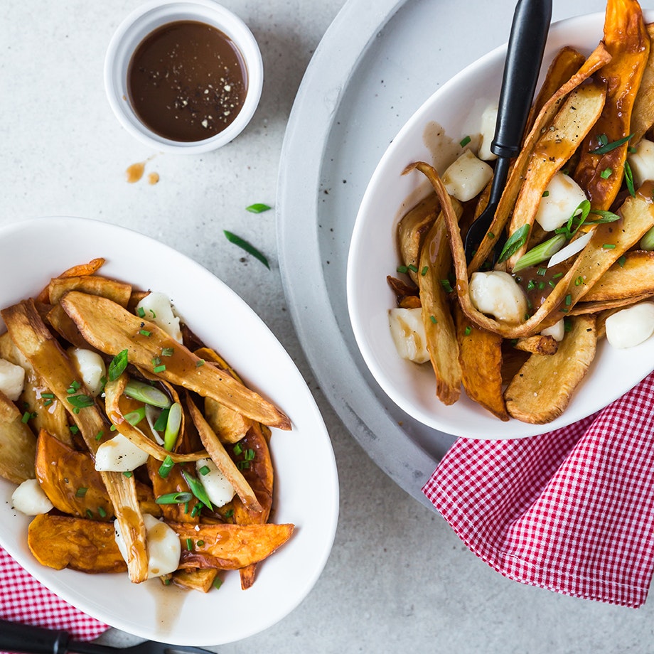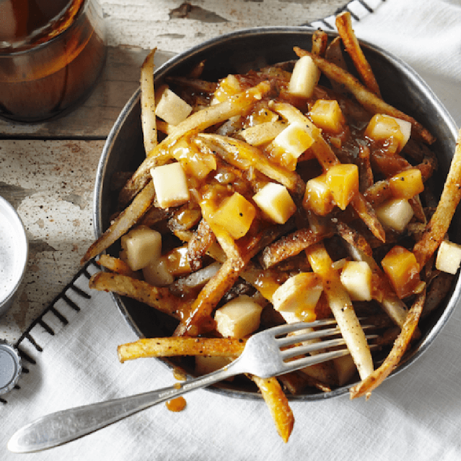 Poutine sauce barbecue à la bière, à la pomme et à l’érable