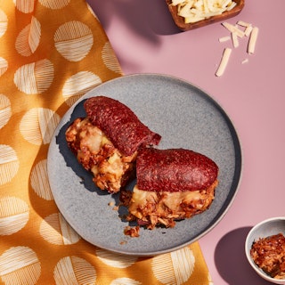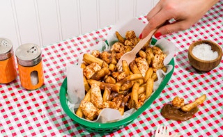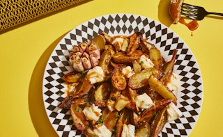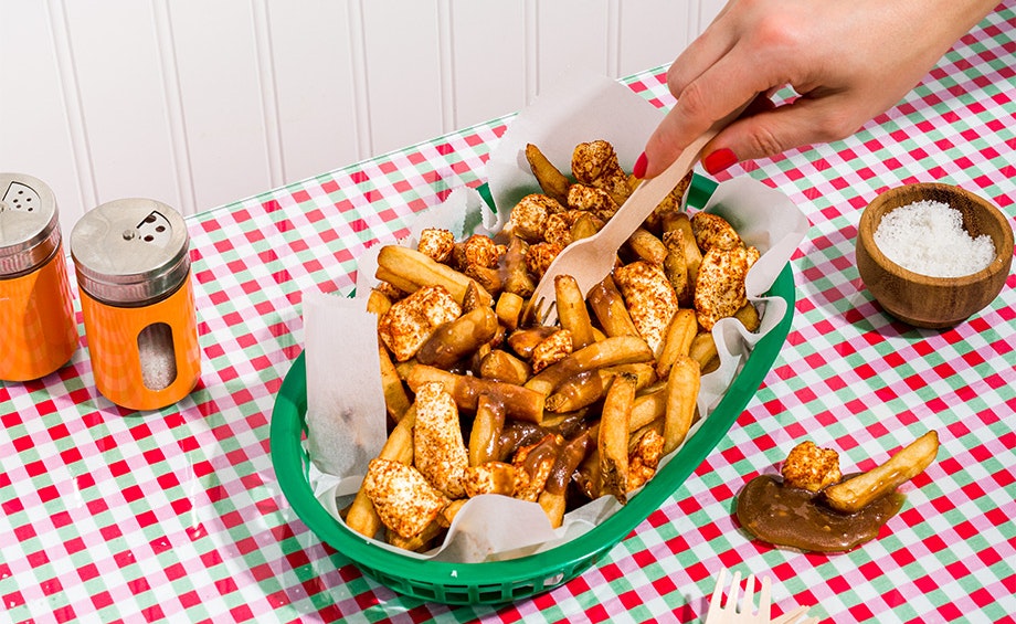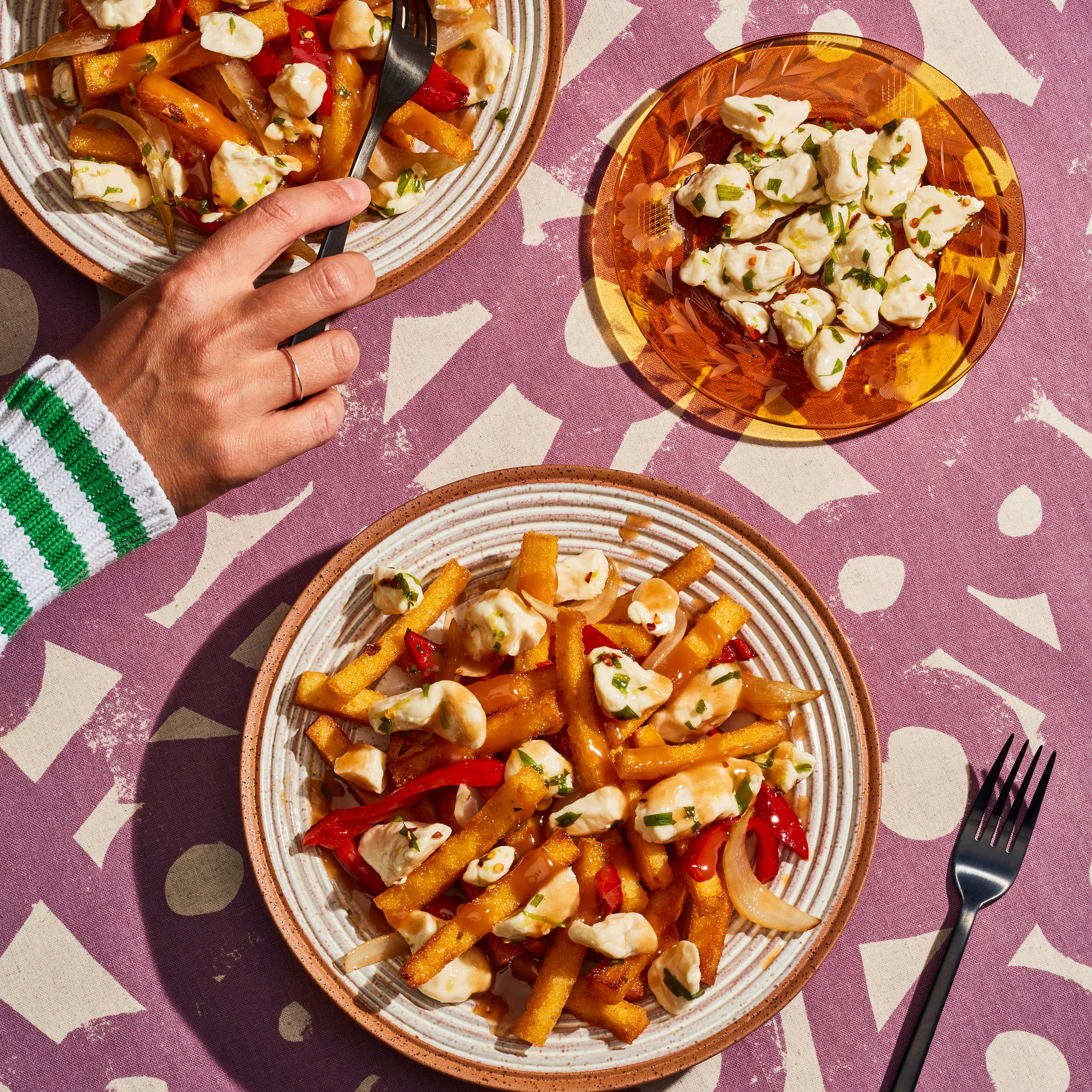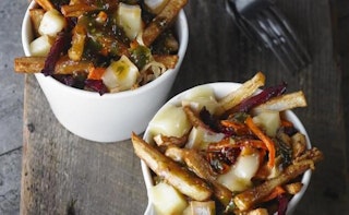 Poutine aux topinambours et au Camembert, sauce demi-glace à l’ail rôti