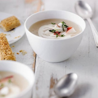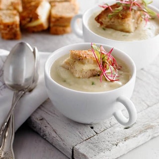 Polenta crémeuse et longe de veau, aromatisées au fromage Le Gré des Champs, avec jus de veau au vin rouge et échalotes frites