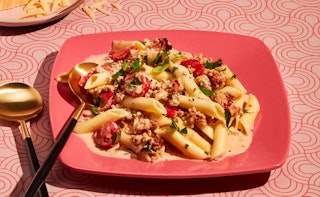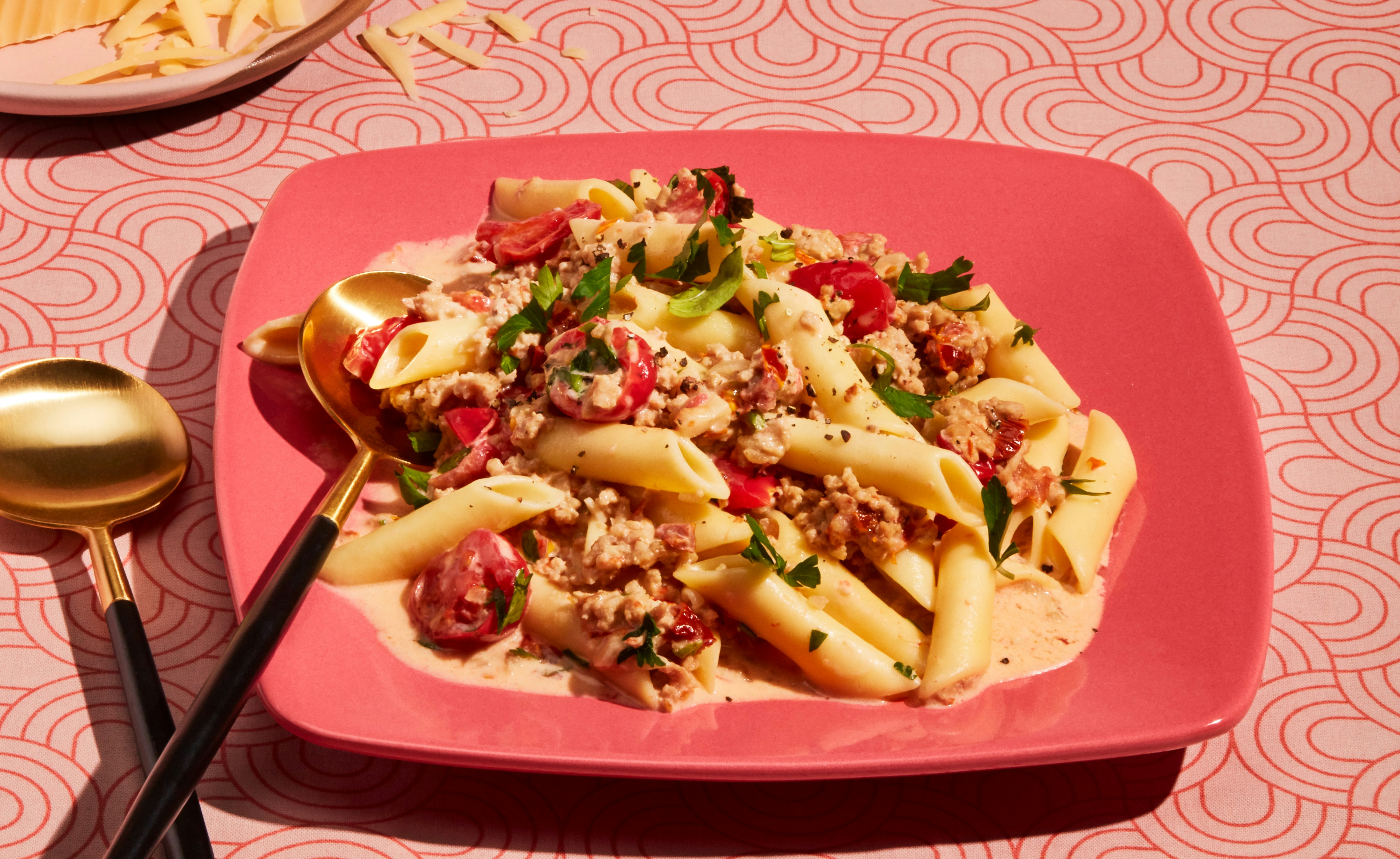 Pâtes à la viande, aux tomates séchées et au cheddar