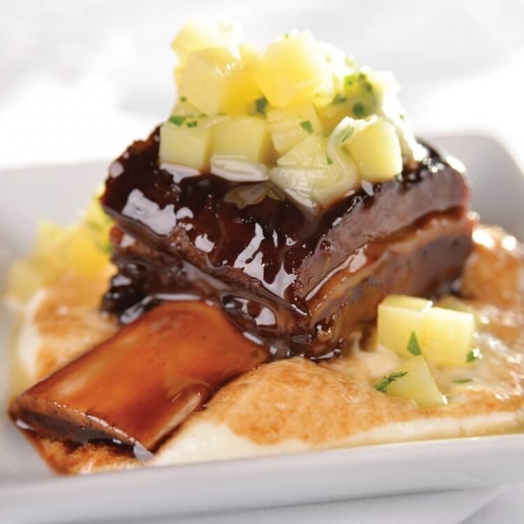 Bouts de côtes de bison braisés, crème à L’Hercule de Charlevoix, étuvé de poireau et pomme de terre