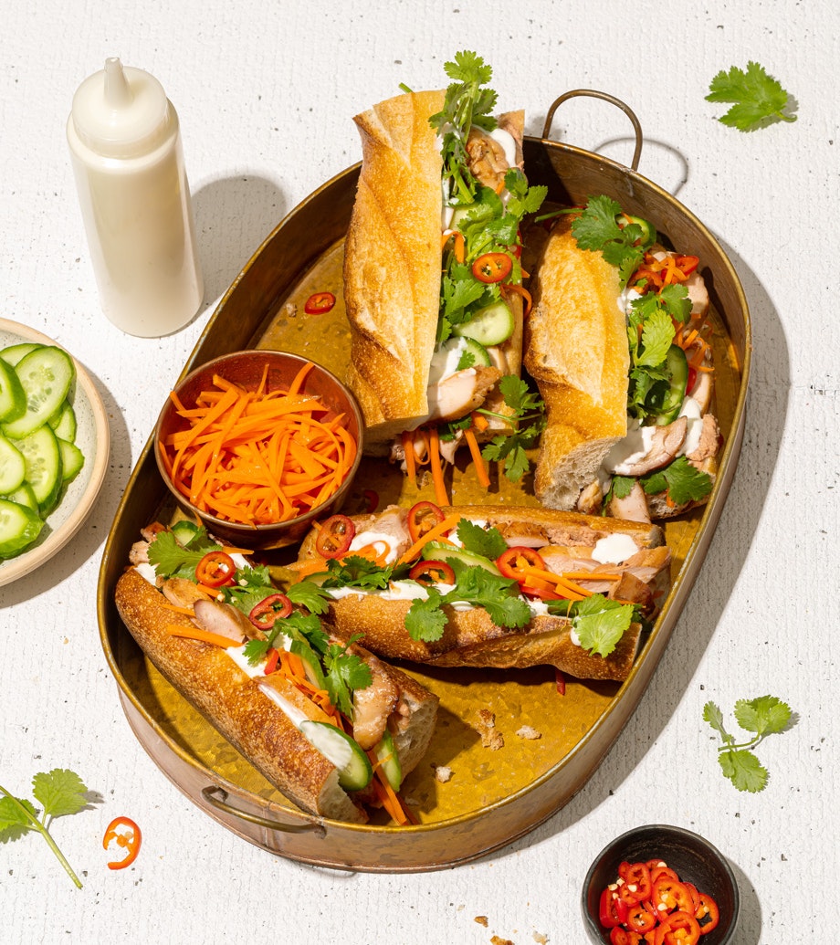 • Si la baguette n’est pas bien croustillante, on peut la mettre au four pendant quelques minutes à 175 °C (350 °F) avant de la garnir.