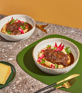 Bœuf braisé au café et purée de chou-fleur au fromage