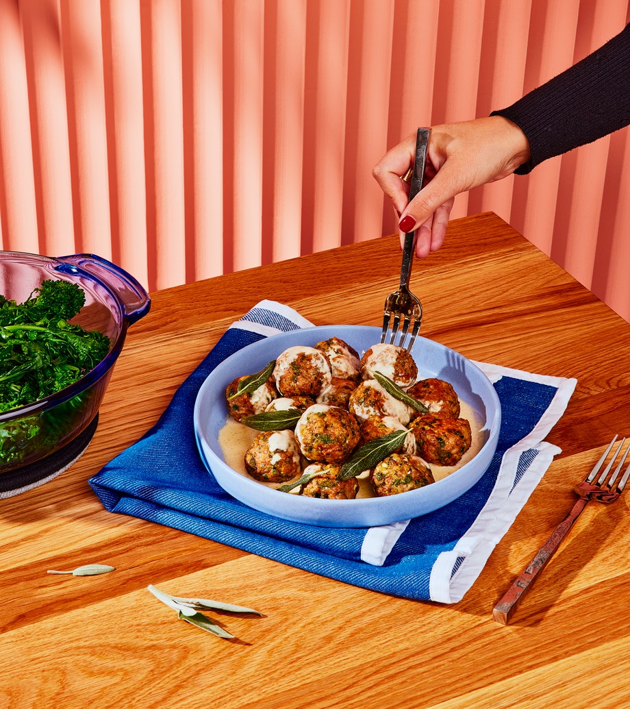 La sauce crémeuse et les feuilles de sauge croustillantes sont délicieuses, mais les boulettes sont aussi très bonnes sans elles.