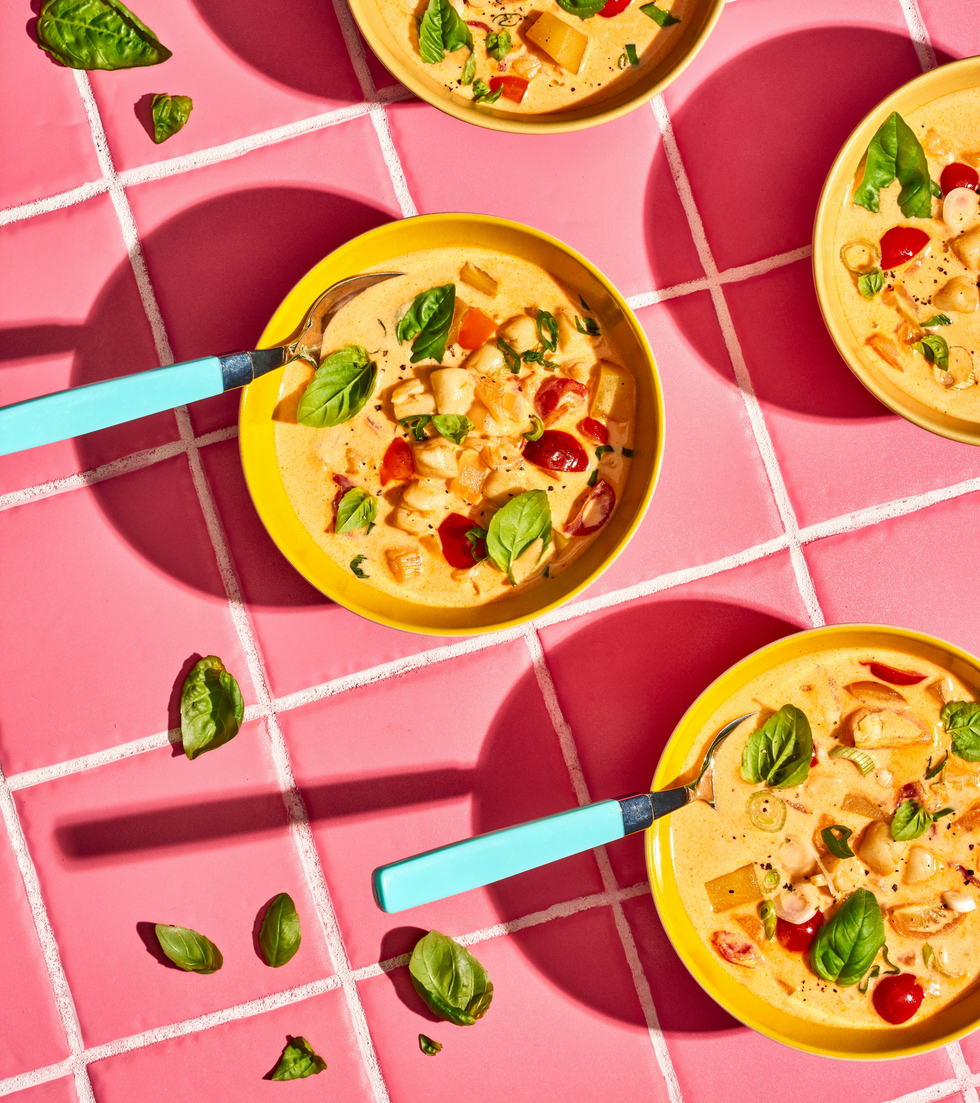Chaudrée de pétoncles aux tomates cerises et au basilic