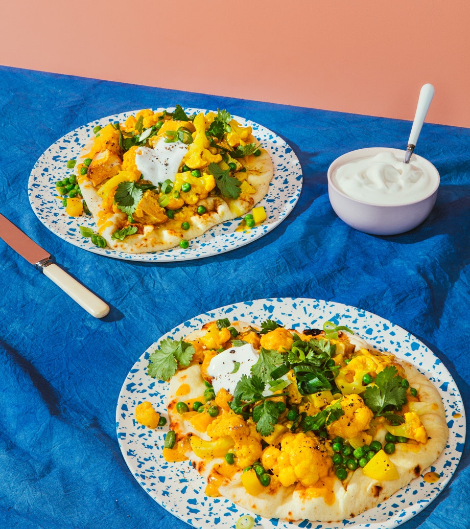 Curry de dindon et de légumes sur naan
