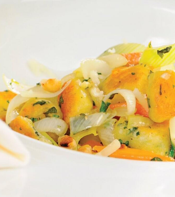 Gnocchis au Louis d’Or, légumes de saison et noix de Grenoble