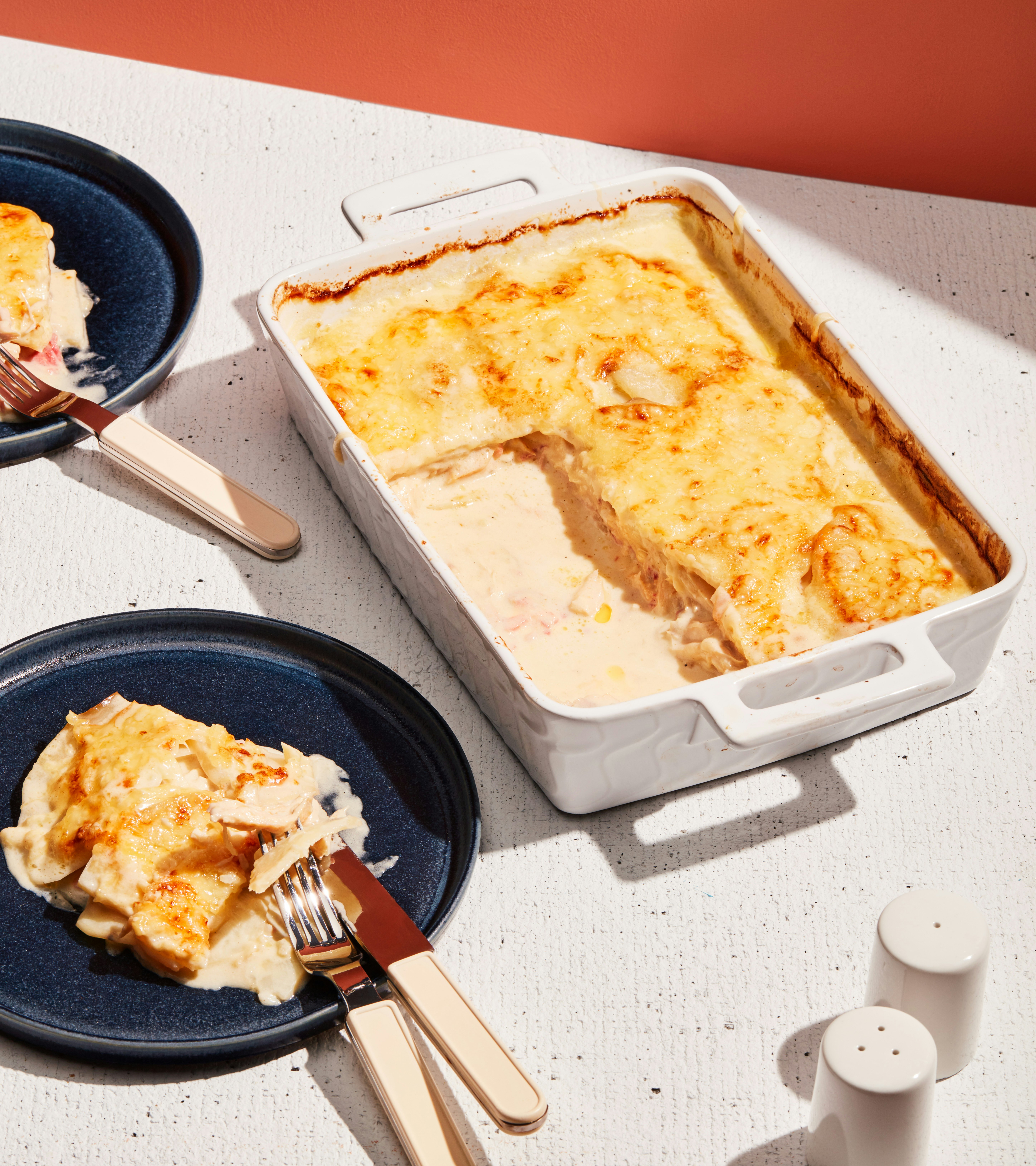 Gratin de poulet et de jambon à la crème