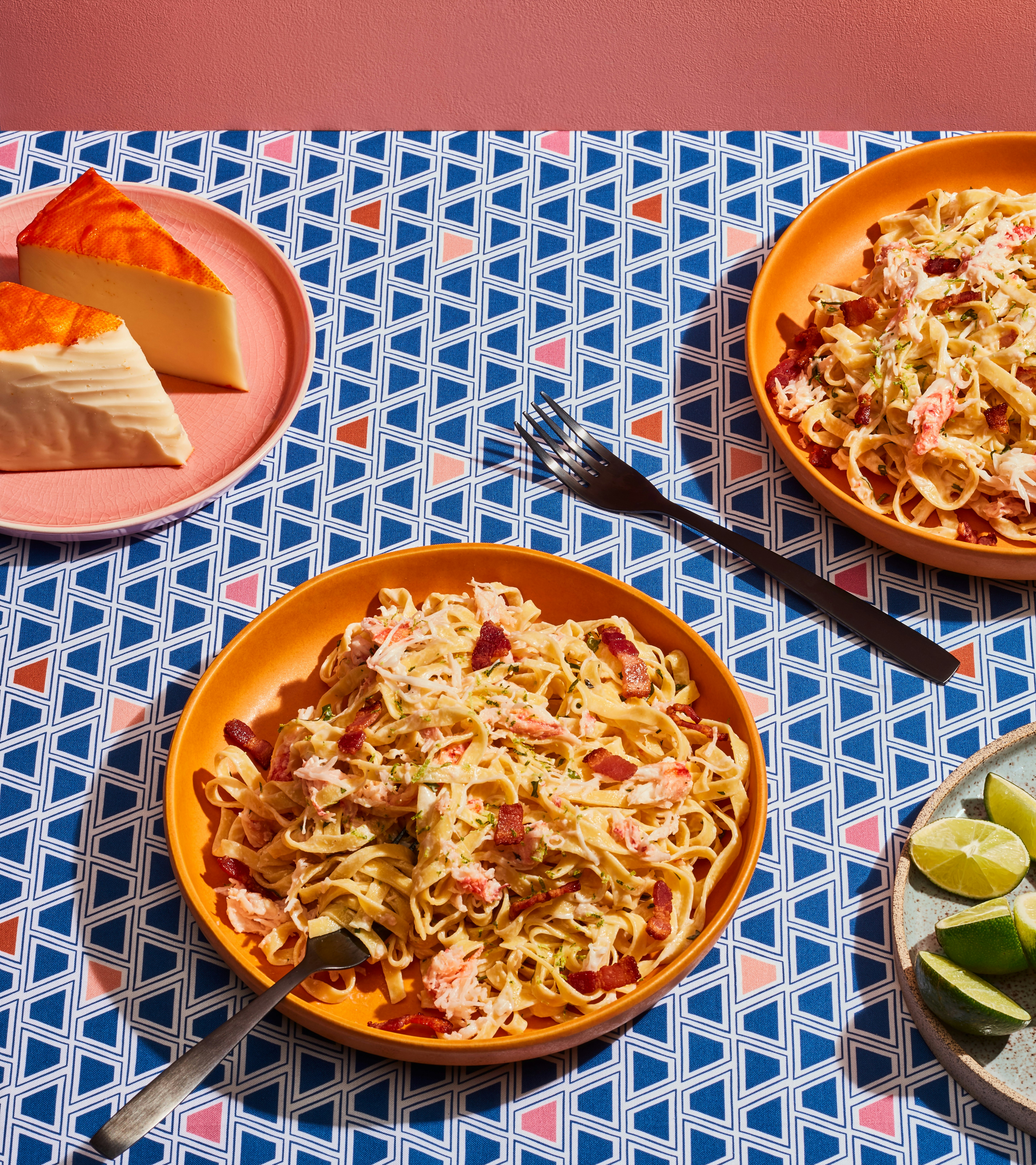 Pâtes au crabe, lime, coriandre et fromage