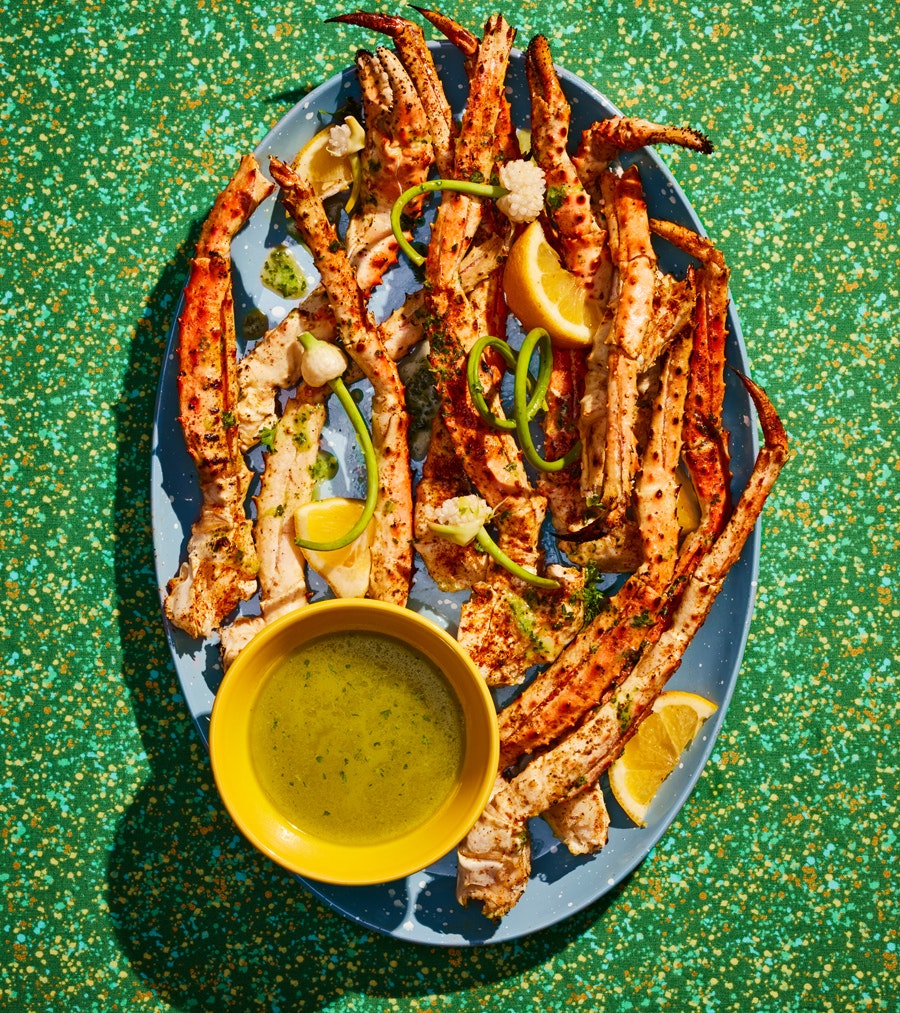 Pattes de crabe au barbecue et sauce au beurre à la fleur d’ail