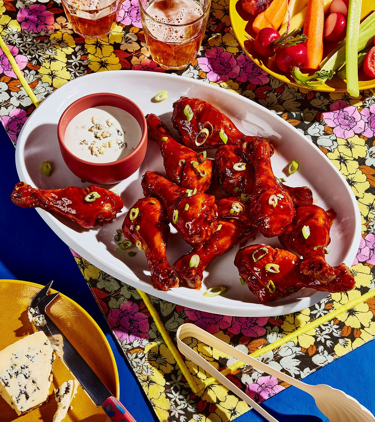 Pilons de poulet sucrés-épicés, sauce au bleu
