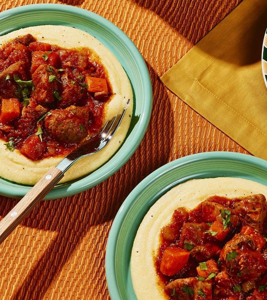 Ragoût de porc braisé aux tomates et polenta crémeuse