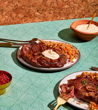 Agneau grillé au poivre rose et crème au romarin