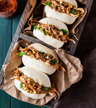 On trouve les conserves de jeune fruit du jacquier dans les magasins d’aliments naturels ou dans les épiceries asiatiques. Les pains bao se trouvent dans la section surgelée des épiceries asiatiques.