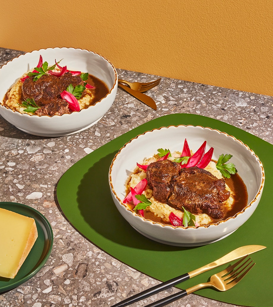 Bœuf braisé au café et purée de chou-fleur au fromage
