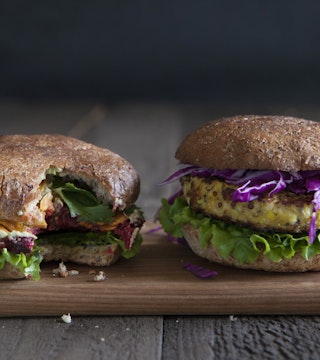 Burger aux pois chiches, sauce au fromage à la crème et au citron confit