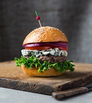 On peut également garnir le burger de relish aux oignons doux, de tranches de poire et de noix de Grenoble hachées. Si on utilise des galettes fraîches, il est préférable de les faire avec du haut de surlonge pour cette recette. La saveur du Bleu Bénédictin sera encore plus rehaussée si on assaisonne le bœuf de sel et de poivre moulu.