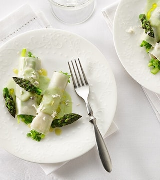 Cannellonis d’asperge, crème au cerfeuil, râpé de raifort