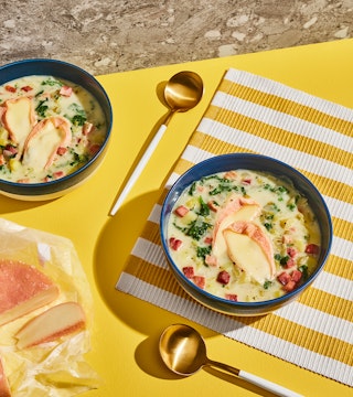 La chaudrée pourrait être garnie avec d’autres fromages à pâte molle, comme Le Pizy ou La Tentation de Laurier.