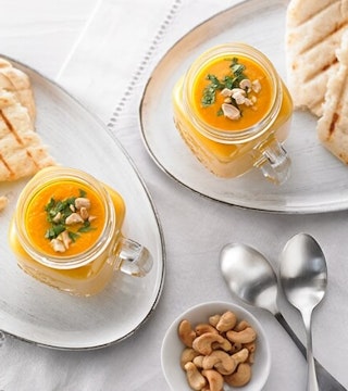 La crème de carottes aux cajous rôtis et gingembre est aussi délicieuse servie froide que chaude.