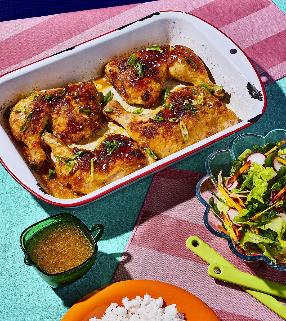 Amateurs de poulet, voici la recette qu'il vous faut : des cuisses de poulet nappées de beurre au miso et à l’érable sous la peau, rôties au four. Un régal garanti!