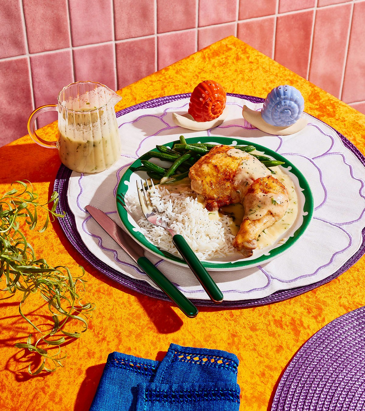 Cuisses de poulet, sauce crémeuse à la moutarde et à l’estragon