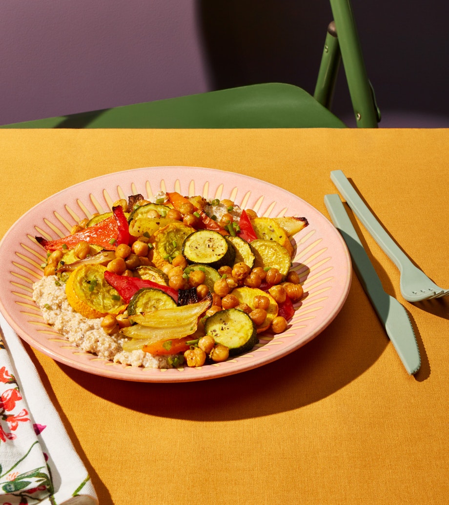 Jardinière de légumes et de pois chiches, quinoa crémeux à l’érable