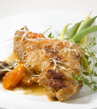 Lapin aux dattes et aux abricots gratiné à L’Ancêtre Suisse Emmental