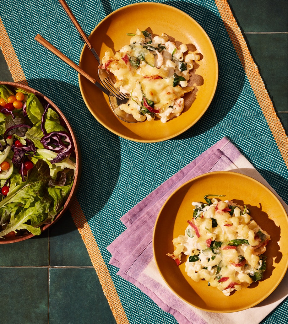Pour une version gratinée, parsemer le plat d’environ 125 ml (1/2 tasse) de mozzarella râpé avant de le mettre au four. Faire cuire dans un four préchauffé à 200 °C (400 °F) jusqu’à ce que le dessus soit doré.