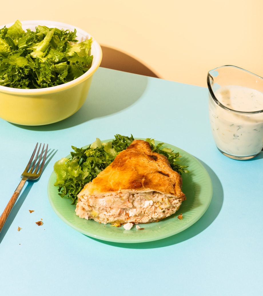 Pâté au saumon, aux poireaux et au feta