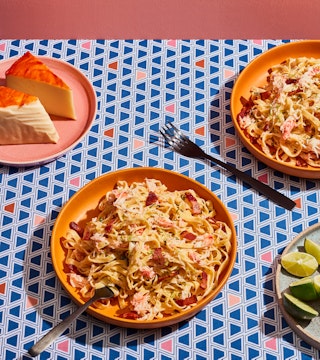 Pâtes au crabe, lime, coriandre et fromage