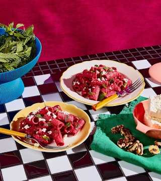 Laissez-vous tenter par cette recette de pâtes roses pour épater vos invités. Pâtes, betterave, feta, herbes fraîches : en 30 minutes chrono, le tour est joué!