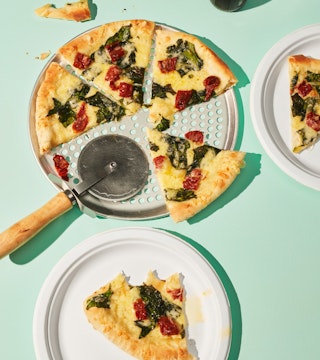 Pizza aux épinards, aux tomates séchées et au fromage