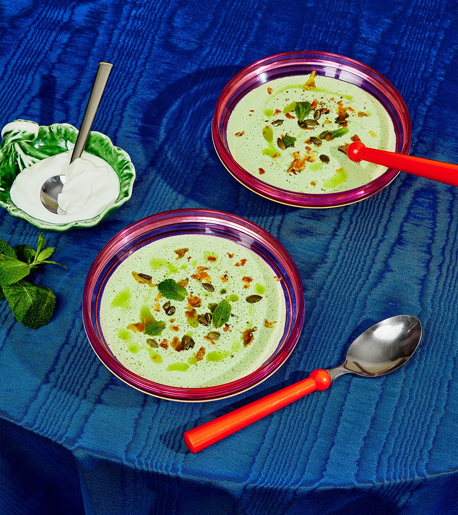 La soupe est encore meilleure lorsqu’elle est bien froide. Si désiré, réfrigérer la soupe pendant 1 heure avant de servir.