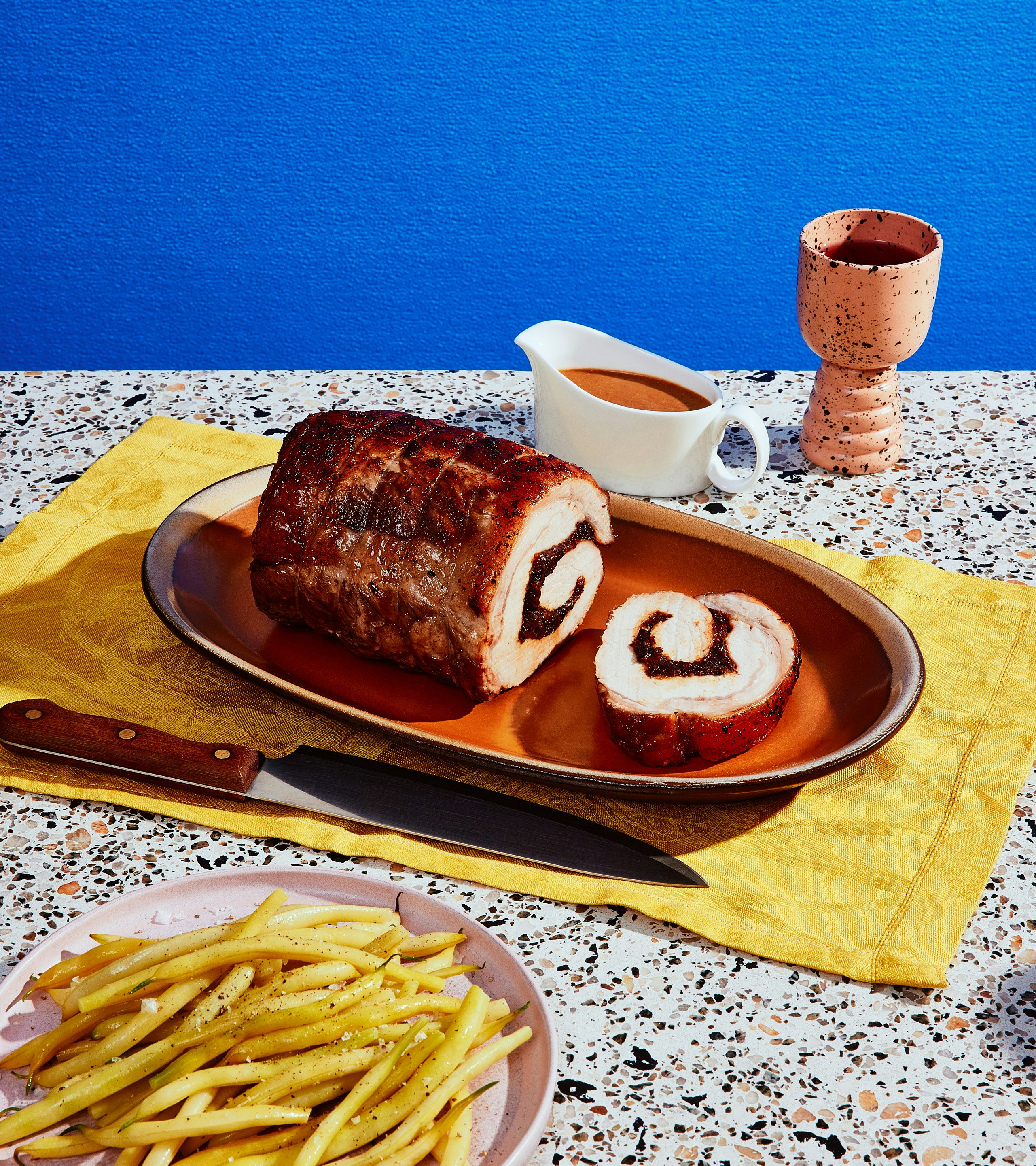 Rôti de porc farci aux pruneaux parfumés d’épices nord-africaines