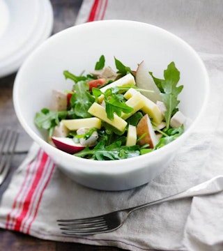 Si la salade n’est pas servie immédiatement, mélanger tous les ingrédients sauf la roquette que vous ajouterez juste avant de déguster.