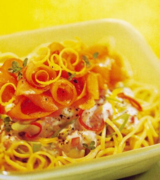 Spaghettinis à la sauce onctueuse garnis de saumon fumé