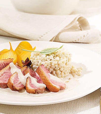 Suprême de canard au caramel d’épices et à la sauce aux marrons