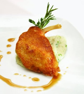 Suprême de pintade rôti en croûte de Baluchon et d’herbes salées de Charlevoix, jus à l’érable