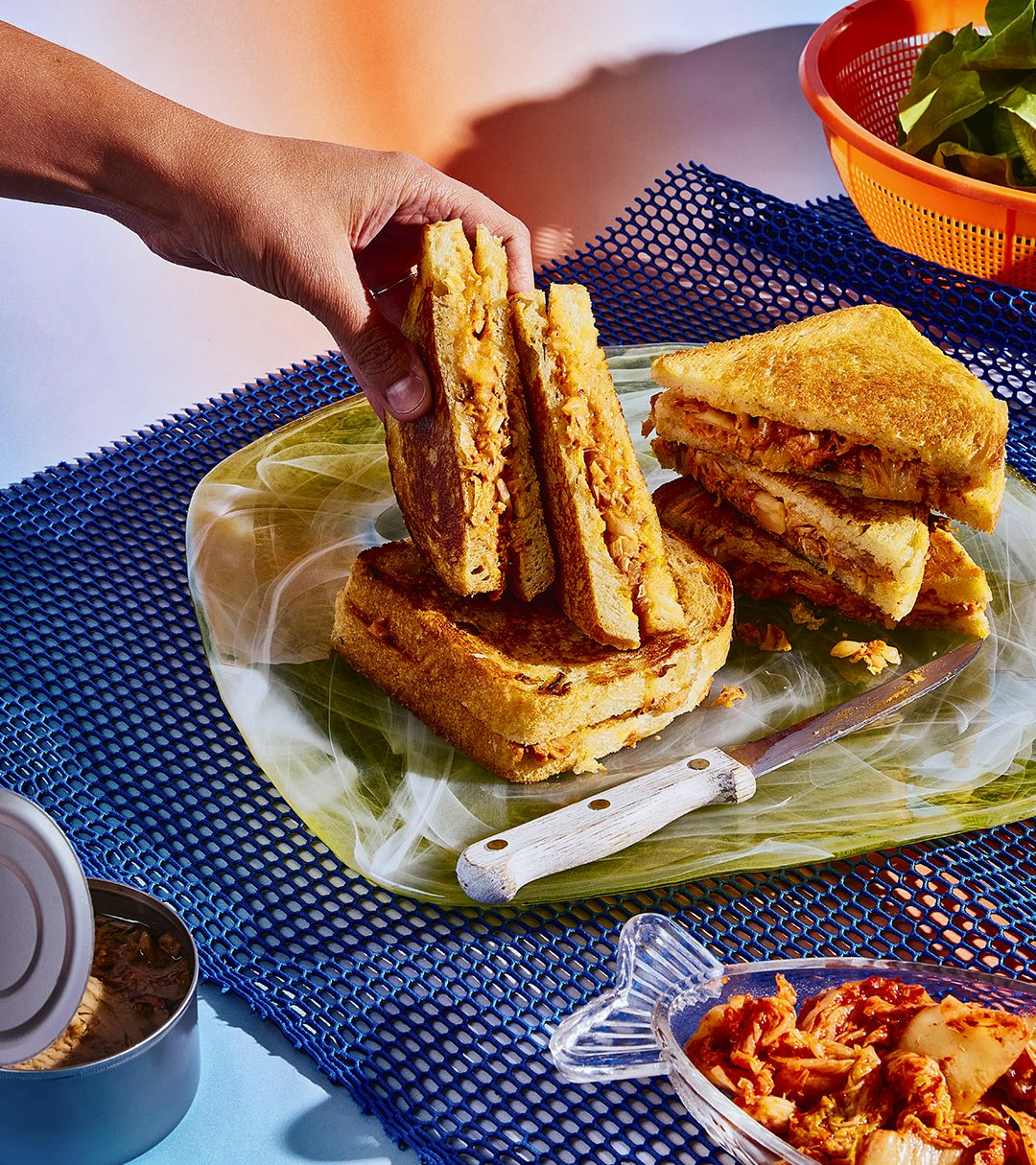Sandwichs fondants au thon, au fromage et au kimchi