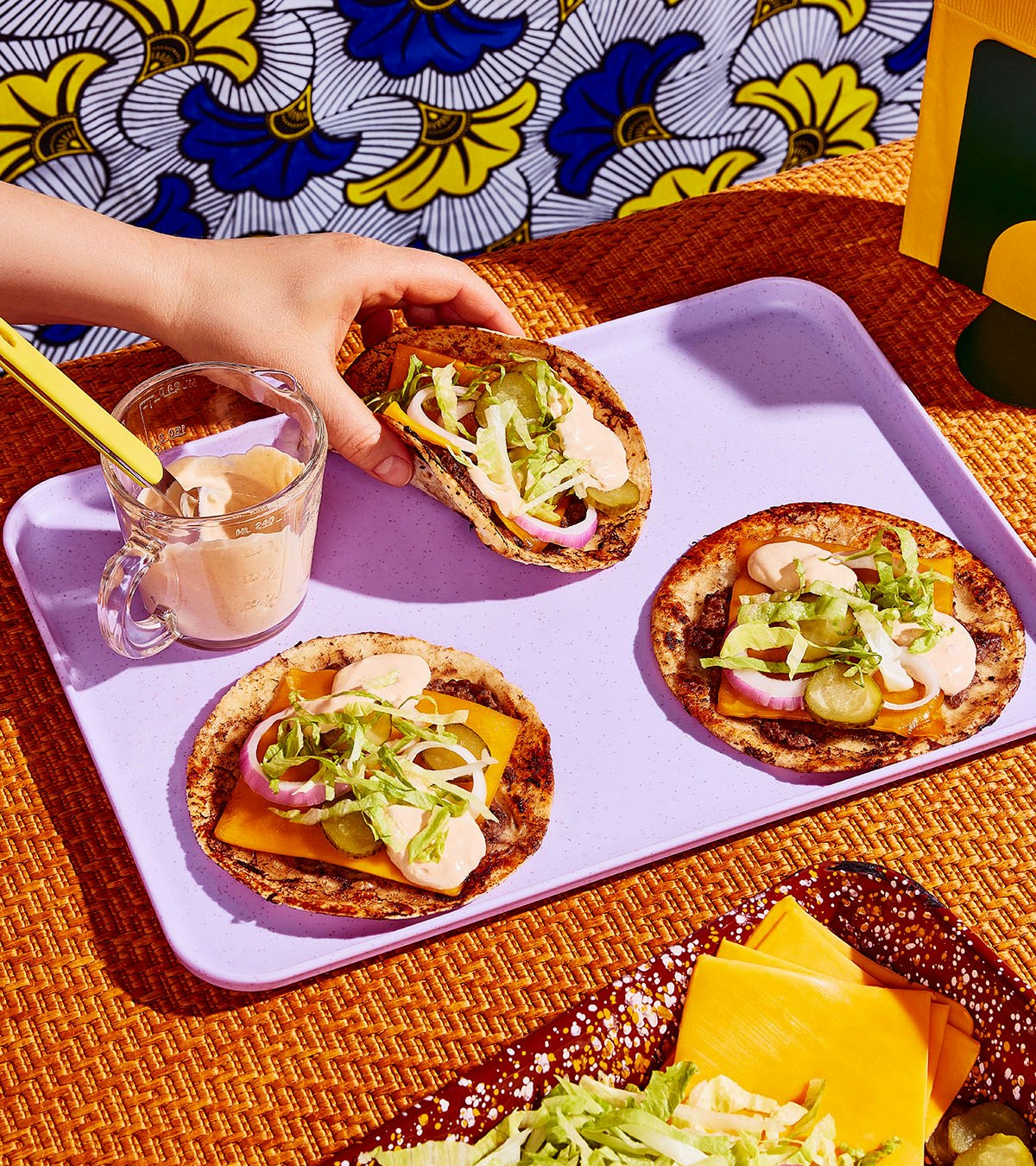 Testez les fameux smash burgers façon tacos, super simple à préparer : du bœuf bien aplati sur un taco, du fromage et une sauce au yogourt. Bon appétit!